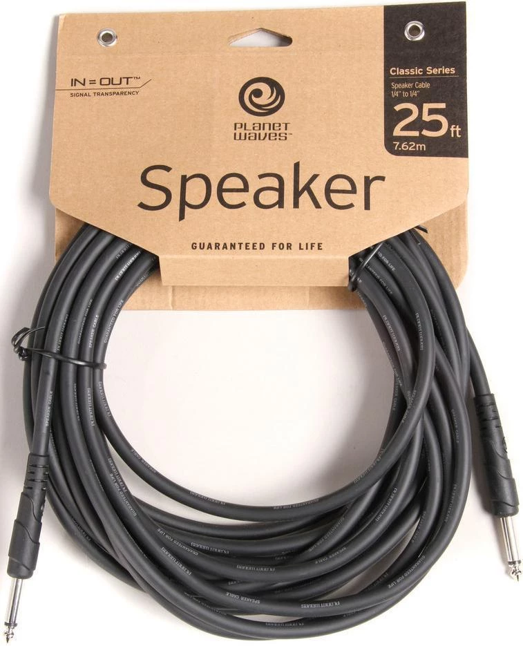 Planet Waves 25′ Classic Series Mono 1/4″ Speaker CableRedefining the meaning of the entry label cable, the Classic Series Speaker Cables feature a 16 gauge premium quality stranded conductor insuring maximum signal transfer while maintaining flexibility. The molded plug and extra-heavy abrasion resistant outer jacket ensure that the cable can will hold up under any condition. Like with all Planet Waves cables, the Classic Series Speaker cables come with a lifetime guarantee.