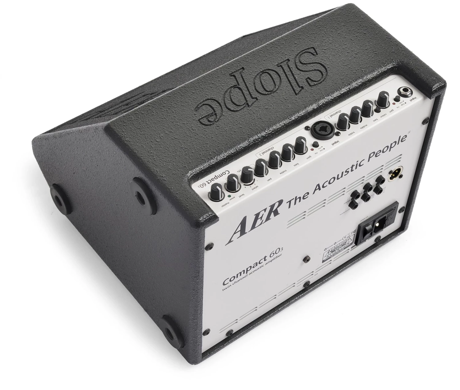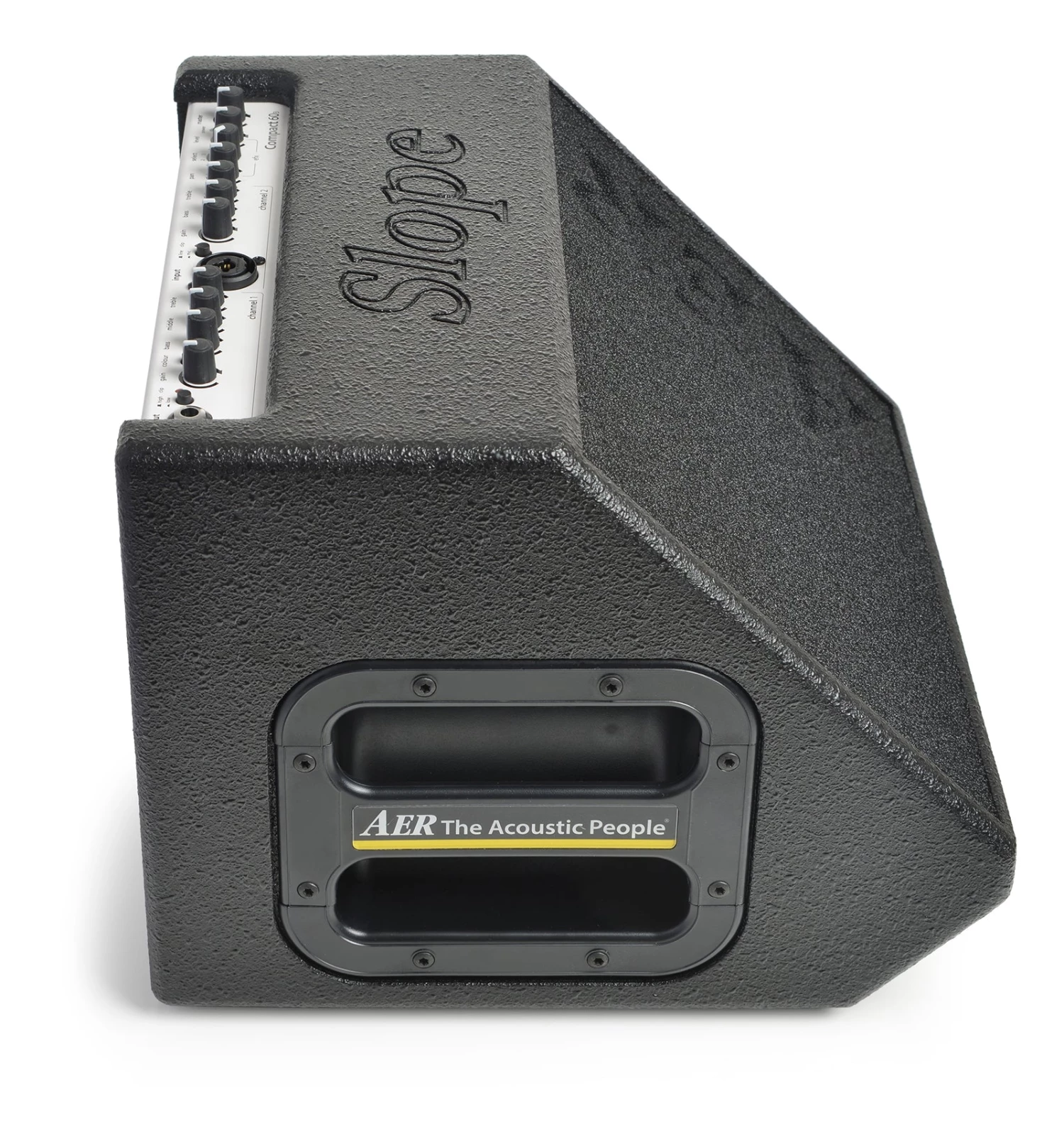 Based on the original Compact 60, the AER Compact-60/4-Slope features a 45-degree angle cut as the front face of the cabinet, making it convenient to use as either a stage amp or monitor. All the features players love about the Compact 60 are included in this Slope version.