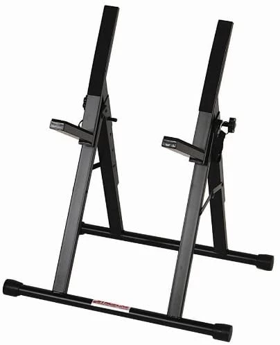 his A-frame stand tilts at 70ΒΊ and will raise cabs from 12″ to 19″ off the floor. It holds up to 150 lbs., and folds for portability.