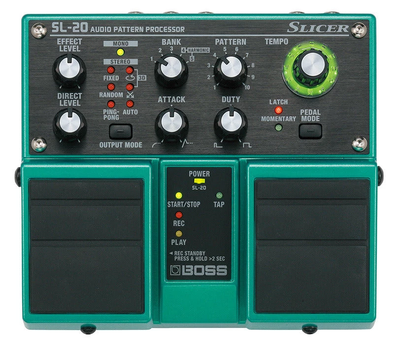 The SL-20 effect pedal transforms your music into percussive “chopped” grooves. Fifty rhythmic patterns are onboard, with adjustable note attack and duration, plus amazing Harmonic Slice effects. Create high-energy patterns onstage in real-time, or use the SL-20 as a songwriting and recording tool. Play the sliced sounds in realtime while capturing them with Loop Record.Â