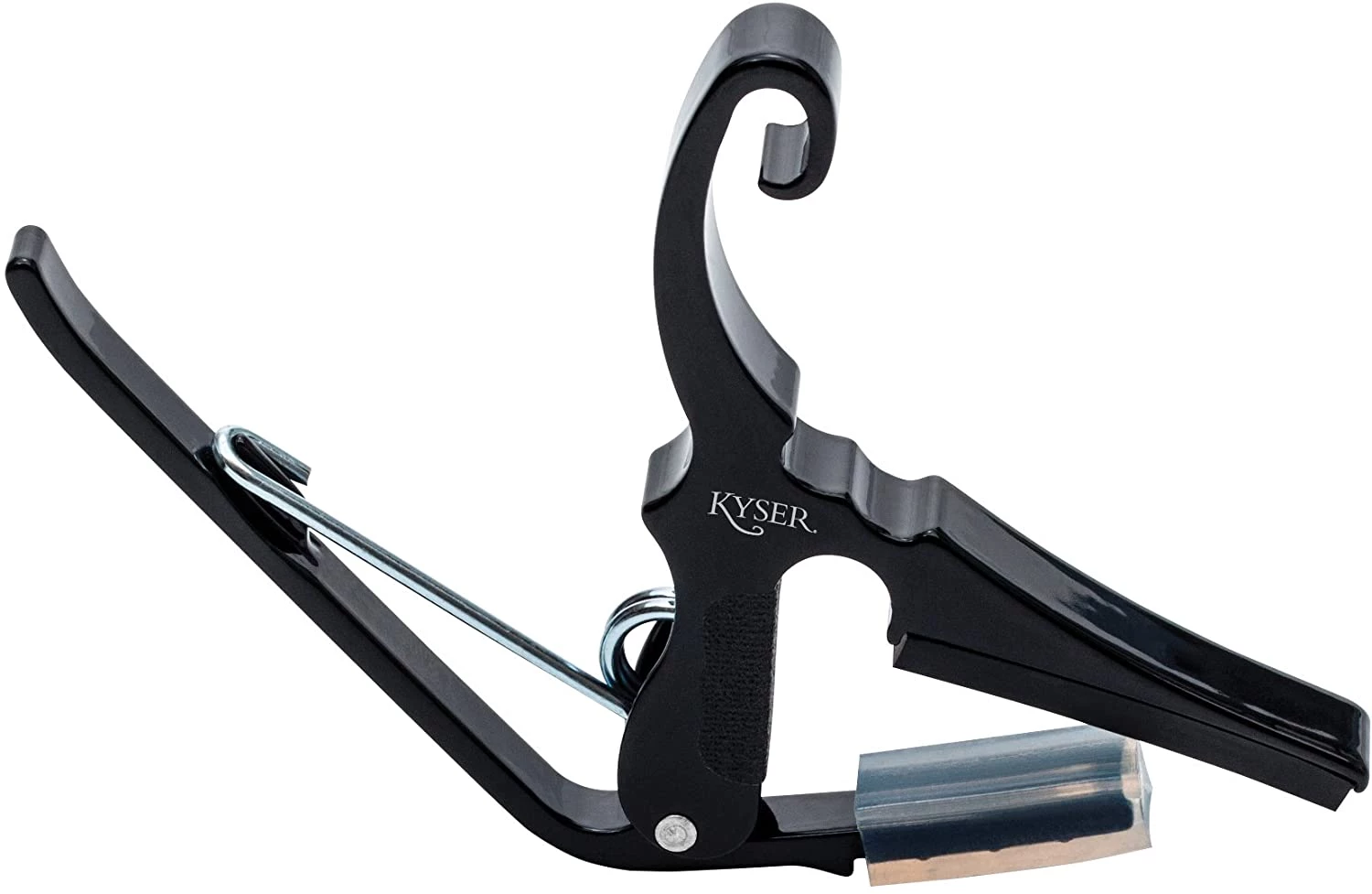 The Kyser Drop D Capo has a special notch that leaves the low E untouched while holding down the rest of the strings firmly. One-touch design lets you add, move, or remove the capo in a flash with one hand. Quality rubber pads won’t mar your guitar’s finish.
