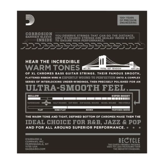 ECB82, D’Addario’s heaviest Flatwound bass strings, are known for their warm, mellow tone and smooth polished feel. Chromes deliver a deep, rich low bottom end which makes them the flat wound choice of Jazz, R&B and Pop musicians. Fits long scale basses with a string scale length of up to 36 1/4 inches.