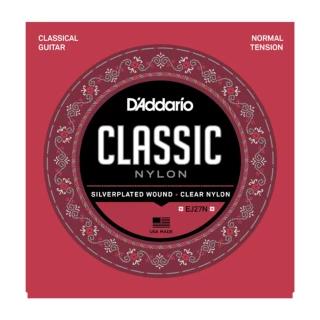 D’Addario’s EJ27N Classic Nylon guitar strings are great for beginners, students and professionals alike. This normal tension set contains 3 clear nylon trebles and 3 silver-plated copper wound basses for the optimal balance of warm and projecting, long lasting tone. This normal tension set is also available for fractional 1/2 and 3/4 size classical guitars.