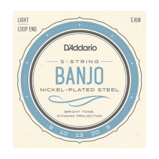 EJ60, one D’Addario’s best selling 5-string banjo sets, offers light playing tension for comfortable playing feel and brilliant tone. Loopend construction for universal fit.