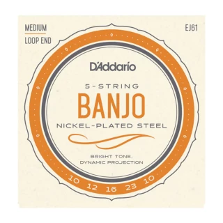 EJ61, D’Addario’s most popular 5-string banjo set, provides the ideal balance of playing tension and bright, projecting tone. Loopend construction for universal fit.