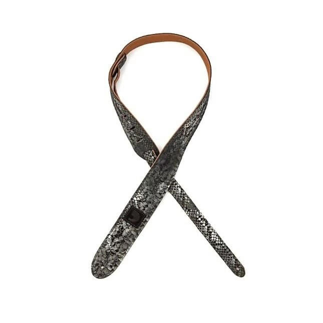 2″ wide, two-ply suede with a silver screened snake print design “The D’Addario Deluxe Series sets the standard for leather straps. From basic single-ply styles to two-ply garment leather straps with soft suede backing, the Deluxe Series exudes class, style, fashion and function. The body of the straps is 4″” longer than standard straps, giving you maximum adjustability from 44.5″” to 53″” long. “