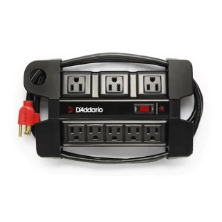 D’Addario’s Tour-Grade Power Base is designed for the touring musician in constant transition between the stage and the road. The Power Base offers 5 standard spaced outlets and 3 transformer spaced outlets. Unlike most power strips that easily tip over, the Power Base features a low, wide footprint in a sturdy metal housing that remains anchored in place no matter how many devices are plugged in. The Power Base also features an integrated cable management system that allows you to wrap the cord around the base for convenience while traveling. No tangling with other cords or gear. No unraveling when thrown in the van. Just an organized power source that’s ready to use, from the studio to the stage and back.
