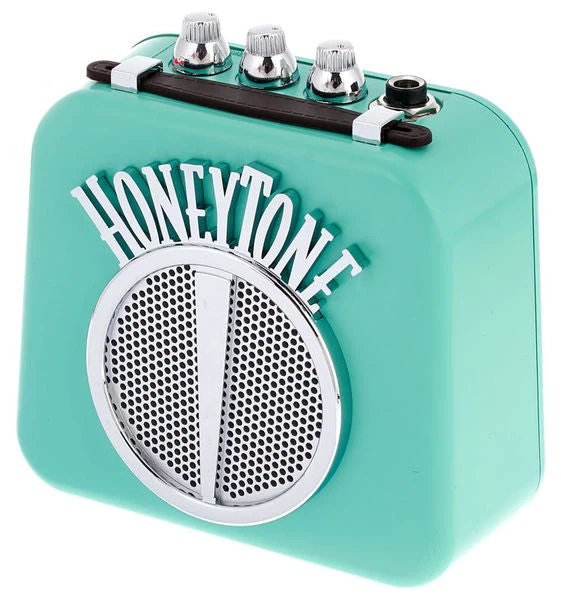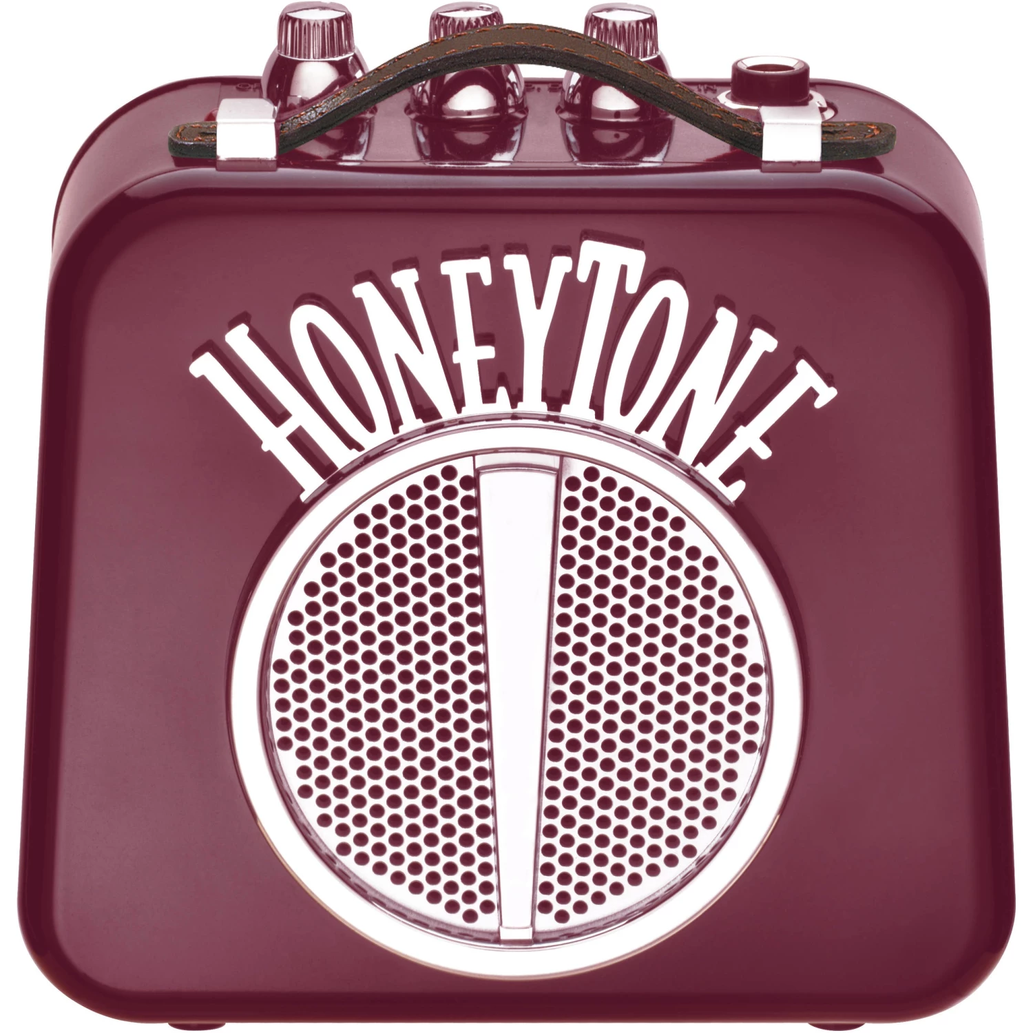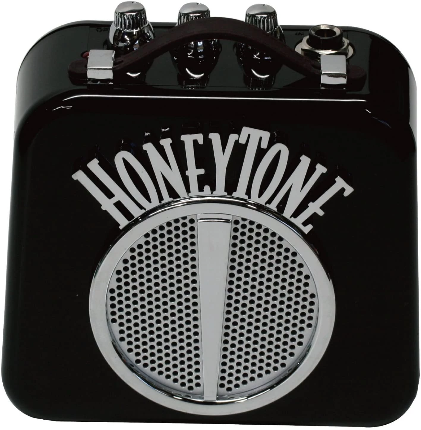 - The Danelctro HoneyTone N-10 Guitar Mini Amp cranks like a little hot rod has a great clean or overdriven sound. The HoneyTone amp also boasts a real leather handle, belt clip, headphone jack, Volume, Tone, and Overdrive controls. The HoneyTone N-10 amp is powered by 9-volt battery (included) or a Danelectro DA-1 adapte (not included)Â