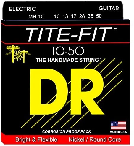 Tite-Fit roundwound nickel-plated electric guitar strings are designed to be a great all-around string available in a wide range of gauges. Based on a round core, the construction techniques for the Tite-Fit electrics are very old. However, the core wire and wrap wire in DRs are the latest, most advanced and expensive metals available. Use Tite-Fit strings for flexibility, tone, and long life. These guitar strings sound great for rock, blues, heavy metal, and jazz.
