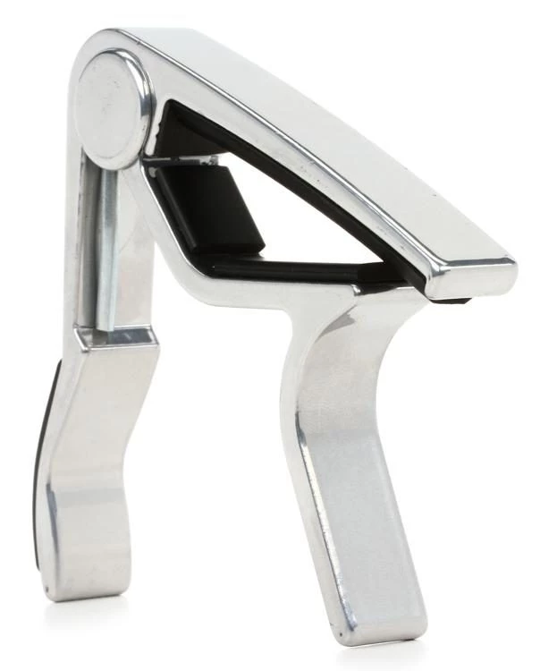 The Jim Dunlop 83CN Trigger acoustic capo provides positive, accurate clamping for curved fingerboards. Made to provide scratch-free performance for your guitar, the low-profile 83CN is designed to stay clear of your fingers. When you need quick key changes without re-tuning, a quality capo is a must, and Dunlop capos are made to do the job right. This unit is constructed of quality aircraft aluminum for reliability and light weight. If you want a great-performing capo that’s made to last, choose the Dunlop 83CN!