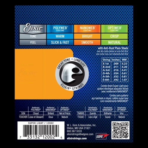 Elixir® Strings deliver the presence, punch, and detail of traditional electric guitar strings. But when it comes to tone life, there is no comparison. Players report with Elixir Strings their tone lasts longer than any other string, uncoated or coated. Elixir Strings for electric guitar are available with NANOWEB® or POLYWEB® Coating.