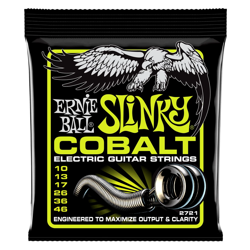 Ernie Ball Cobalt Slinky Electric Guitar Strings provide an extended dynamic range, incredible harmonic response, increased low end, and crisp, clear highs. Cobalt provides a stronger magnetic relationship between pickups and strings than any other alloy previously available. Cobalt Slinky guitar strings are also soft and silky to the touch, making string bending a breeze. Gauges .010, .013, .017, .026, .036, .046