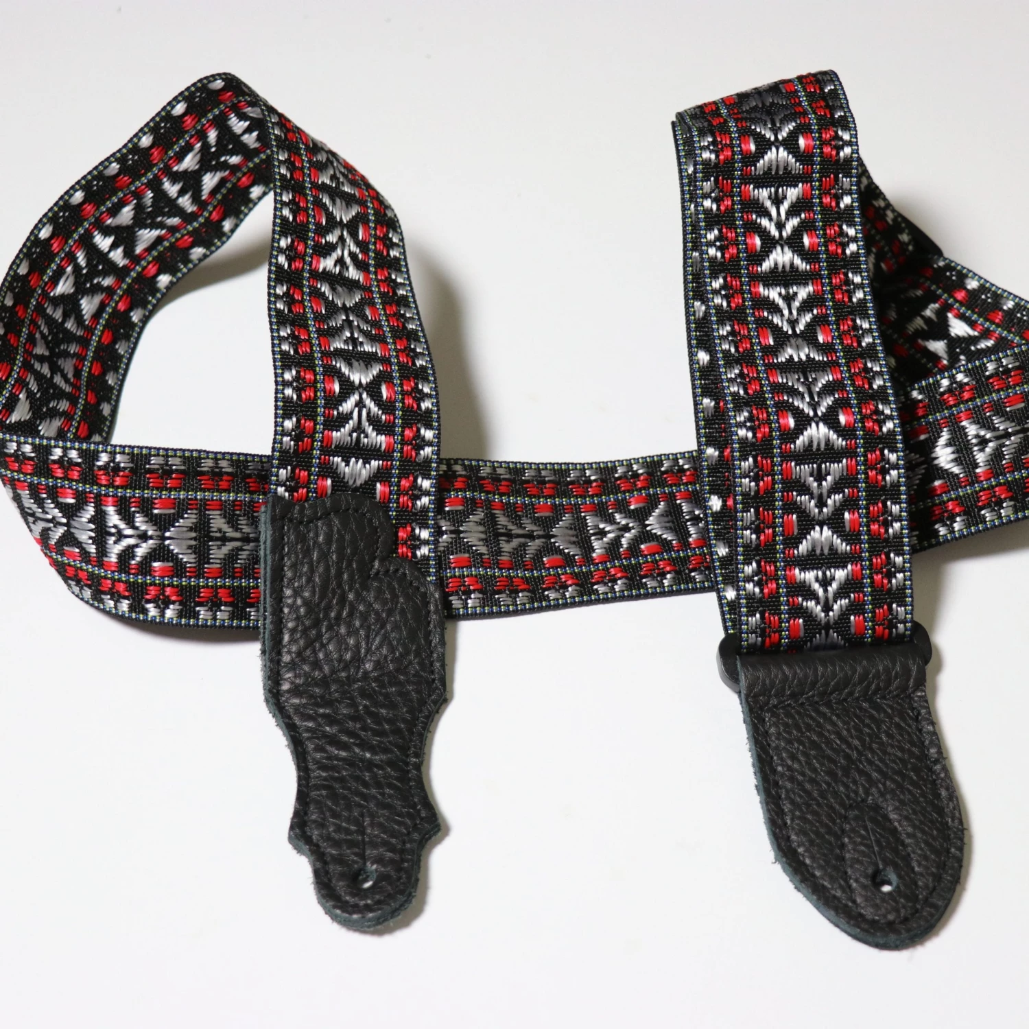 The vibrant folk weave is topped off with a supple black glove leather end tab for a rich feel.