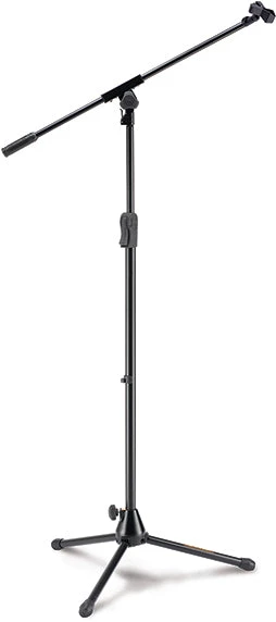 The HERCULES Tripod Base Boom Mic stand MS531B features the EZ Mic Clip, the Quik-N-EZ Boom Retainer, and the EZ Clutch.