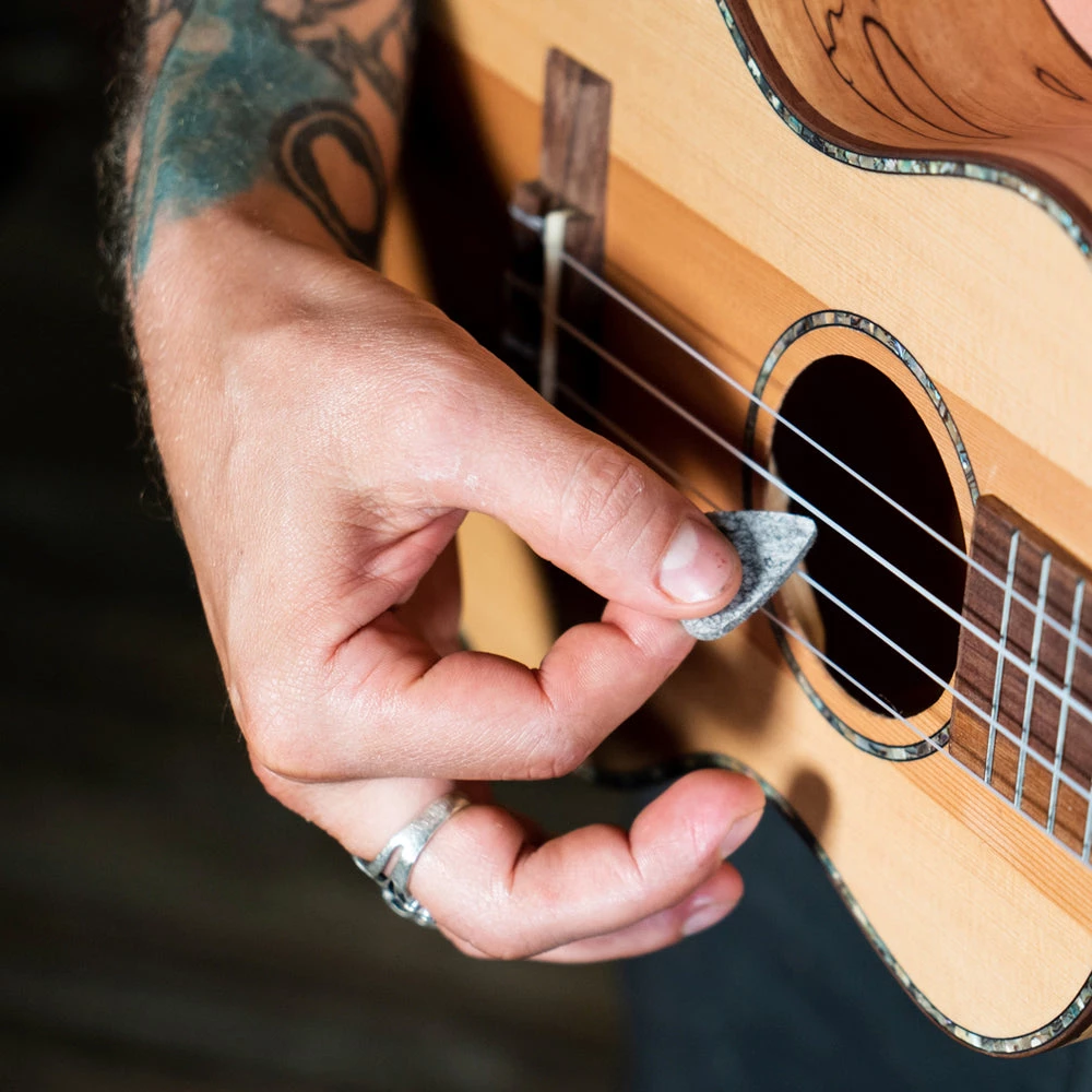 Not quite ready to ditch the pick or looking for a bit louder attack from that new uke? Look no further. Hilo’s got you covered with our new felt picks. Made only of the finest quality materials and come in two sizes to allow you to “take your pick” and find your inner aloha.