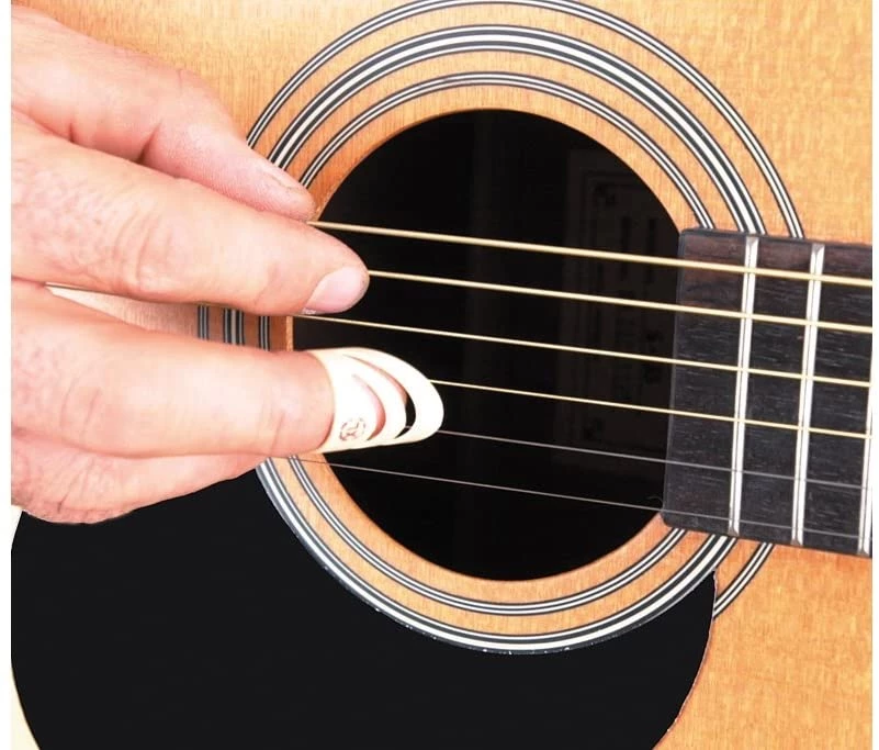 - Brilliant design slides on over your finger, but the picking edge fits underneath your fingernail! You still have the intimate string touch you get with your own nails, but with no danger of painful nail breaks