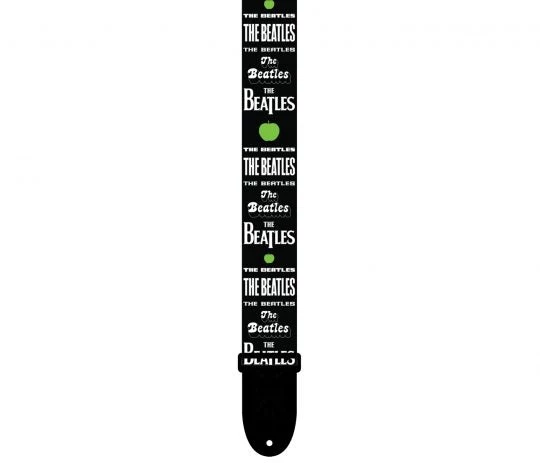 2” The Beatles Official Licensing Multiple White Logos on Black Heat Transfer Design on Polyester Webbing Guitar Strap.