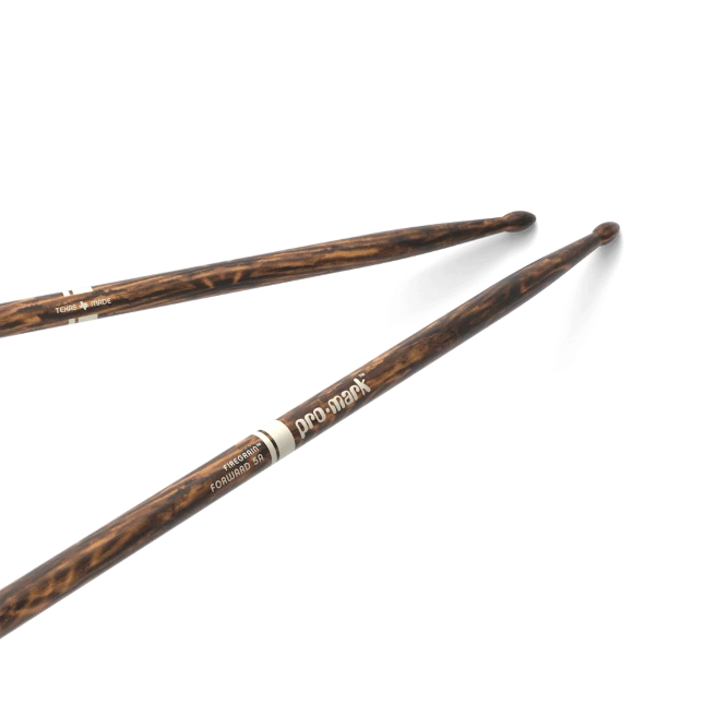 ProMark’s most durable Forward 5A. FireGrain is a patented heat-tempering process that transforms ordinary hickory drumsticks into precision tools with unprecedented durability. While keeping their original weight and balance, ProMark FireGrain sticks allow drummers to hit harder and play longer, naturally. No excess vibration, no space age gimmicks, just natural hickory hardened by flame. Diameter : .551″ / 14mm / Length: 16″ / 406.4mm